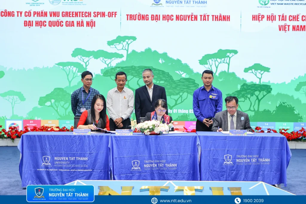 The event also featured the signing of strategic cooperation agreements between NTTU and partner organizations such as VNU Greentech Spin-off and the Vietnam Waste Recycling Association. Practical data generated from the project will serve as a critical foundation for optimizing and scaling up the Global EcoSchool – VNNetZero model, contributing to ESG objectives and the Green Development Strategy of Ho Chi Minh City in the new phase.